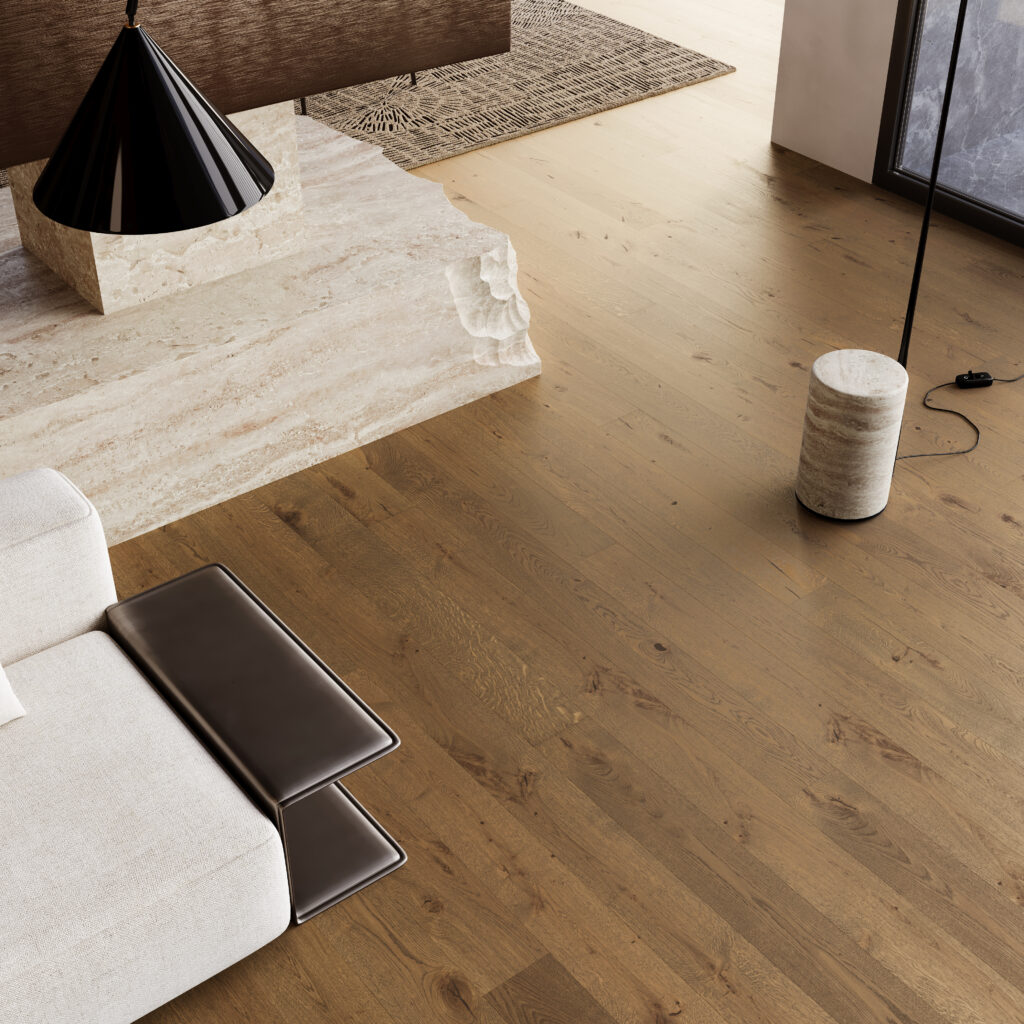 Zakoupené balíky dřevěných podlah by měly být vodorovně uskladněny v místnosti, kde budou položeny po dobu minimálně 48 hodin bez vybalení. Obsah vlhkosti v cementovém podkladu by neměl překročit 2% a v anhydritovém podkladu 0,5%, měřeno metodou CM. Relativní vlhkost vzduchu by měla být 45% až 60% a teplota během pokládky a používání mezi 18 ° C a 24 ° C (64,4 ° F a 75,2 ° F).