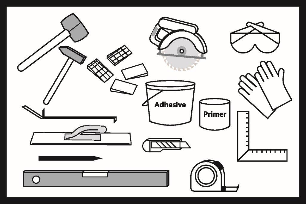 Doporučené nástroje a materiály pro montáž podlahy: