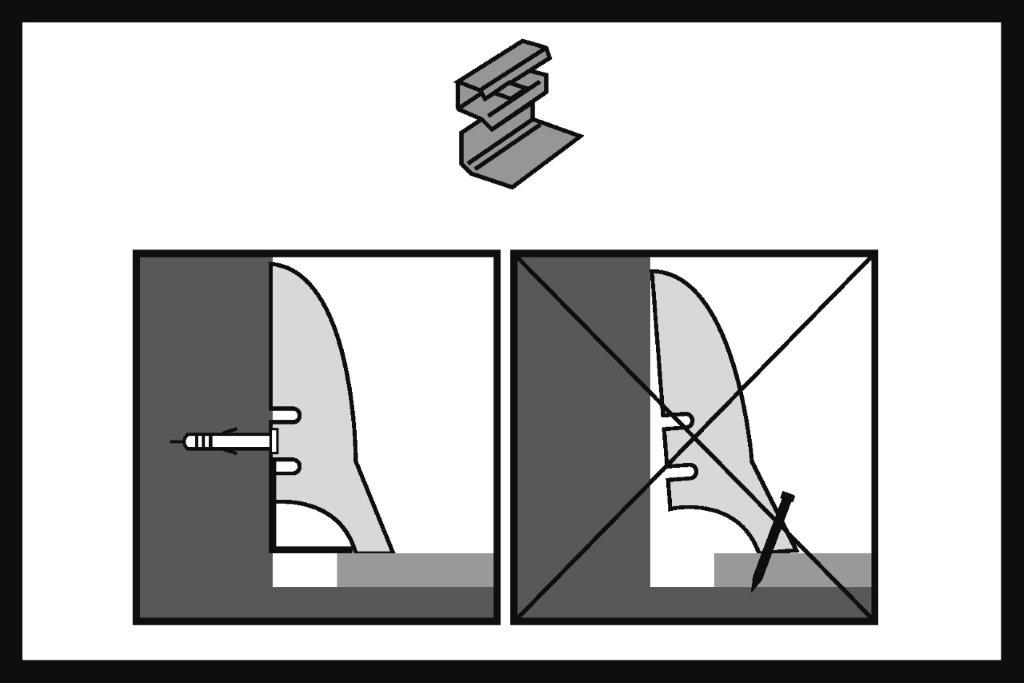 Po namontování celé plochy podlahy je třeba nainstalovat dekorativní soklové lišty. Lišty upevňujeme výhradně ke stěnám, pomocí upevňovacích klipů nebo montážního lepidla.