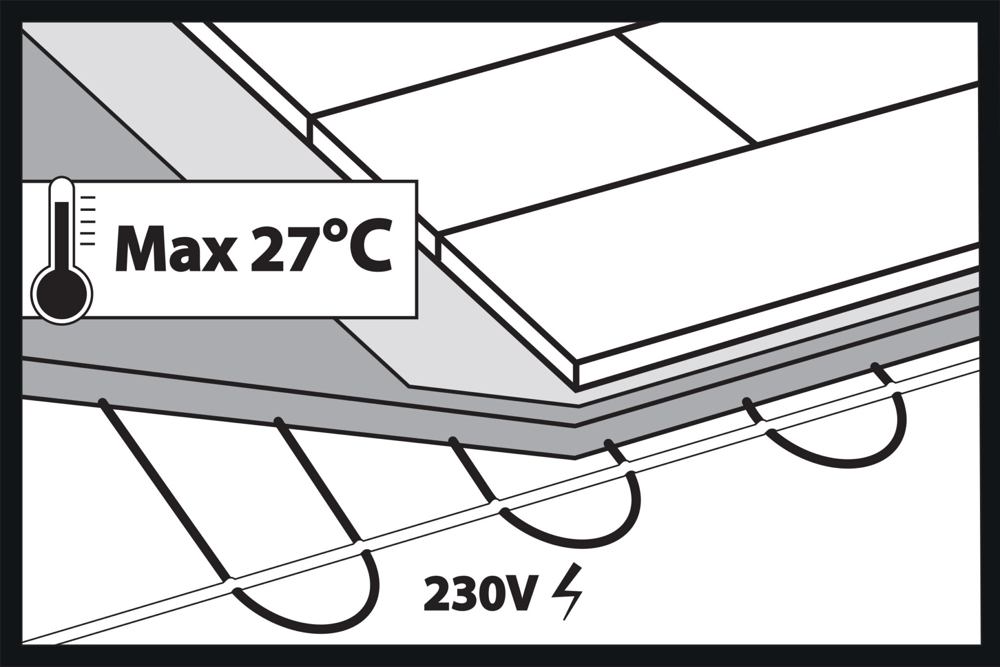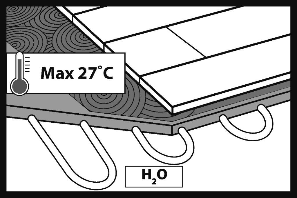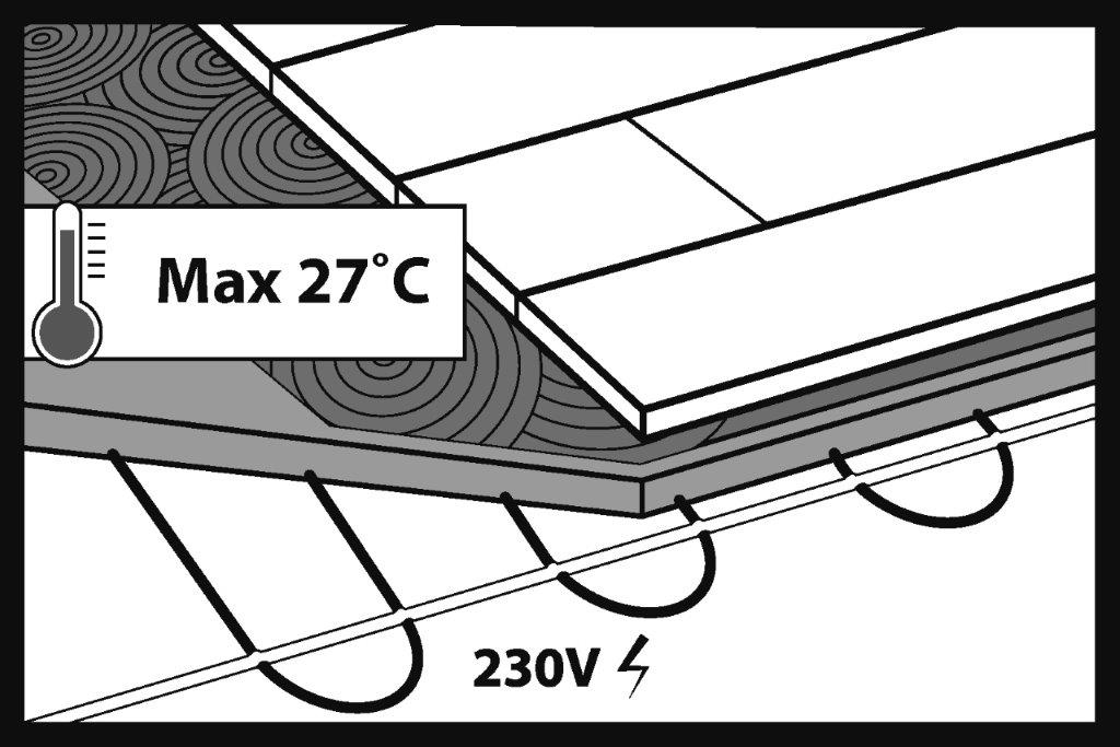 Maximální teplota, na kterou by mělo být nastaveno topení, je 27°C na povrchu panelů.