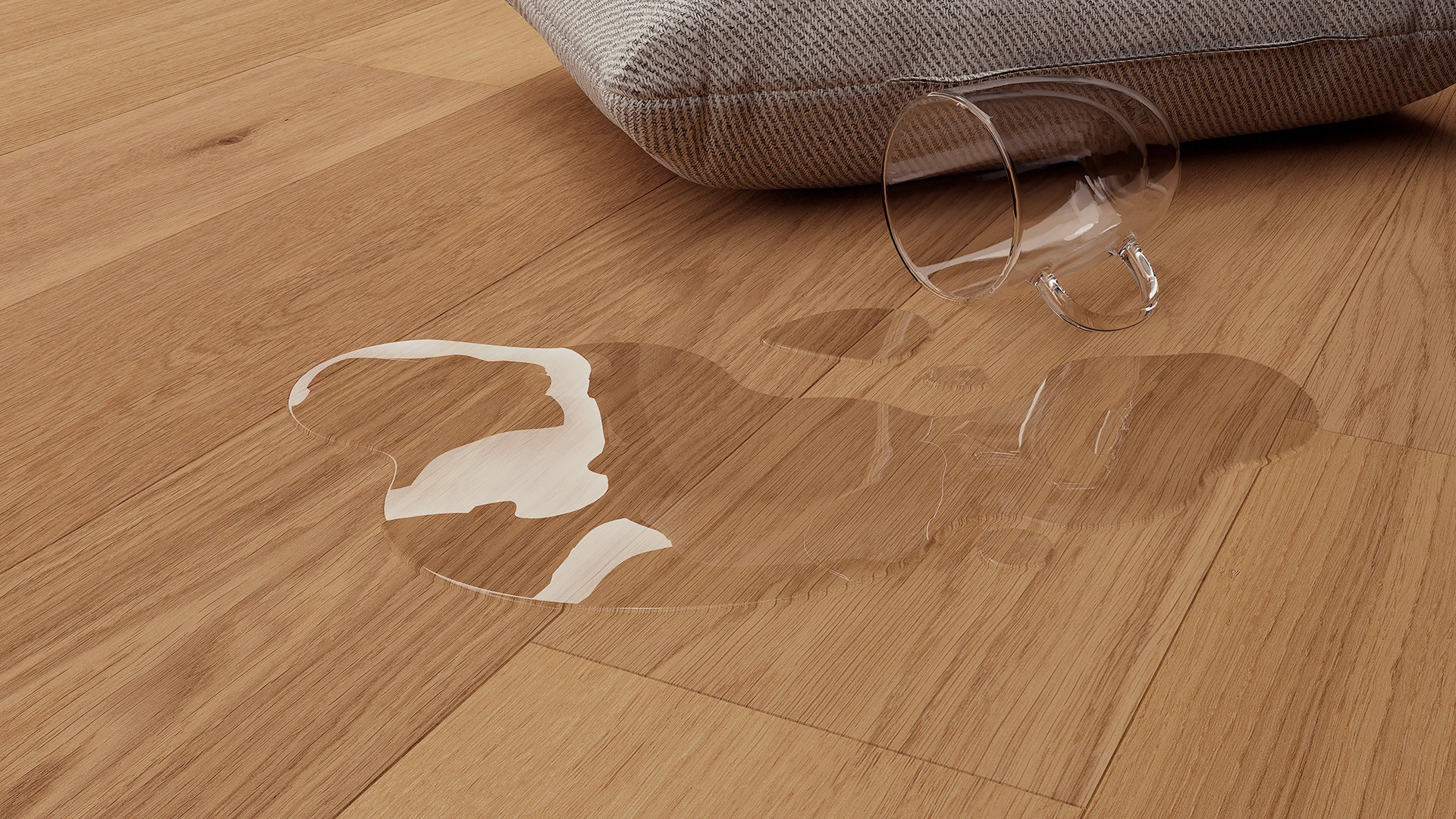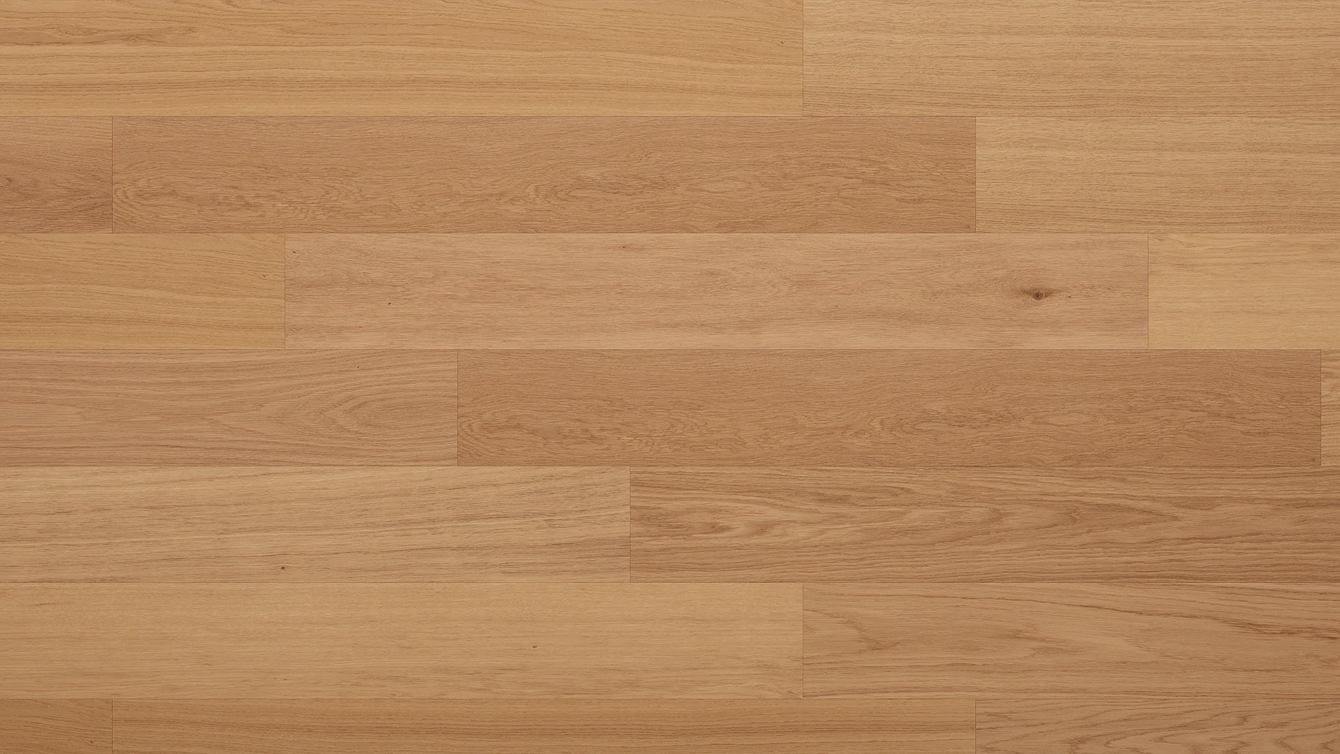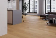 Dubová podlaha v krémovém odstínu, která do interiéru vnáší autentičnost, čistotu a jemný minimalismus.